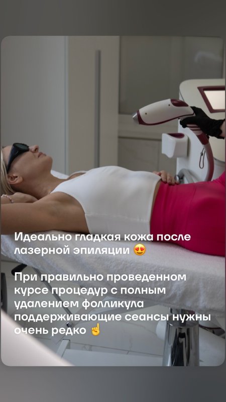 Здесь вы можете пройти курс лазерной эпиляции - самый результативный и безопасный из доступных сегодня методов удалить нежелательные волоски на теле, который по праву можно назвать хитом современной косметологии. Уже после первого сеанса вы увидите заметный результат, а грамотно спланированный курс процедур (их количество и частота проведения подбираются в зависимости от индивидуальных особенностей организма) - это заманчивая возможность получить гладкую кожу навсегда!